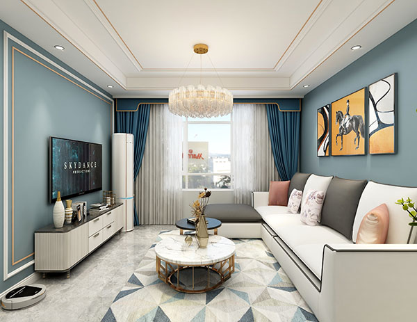蔚蓝郡110平方三室两厅诧寂风格装修效果图