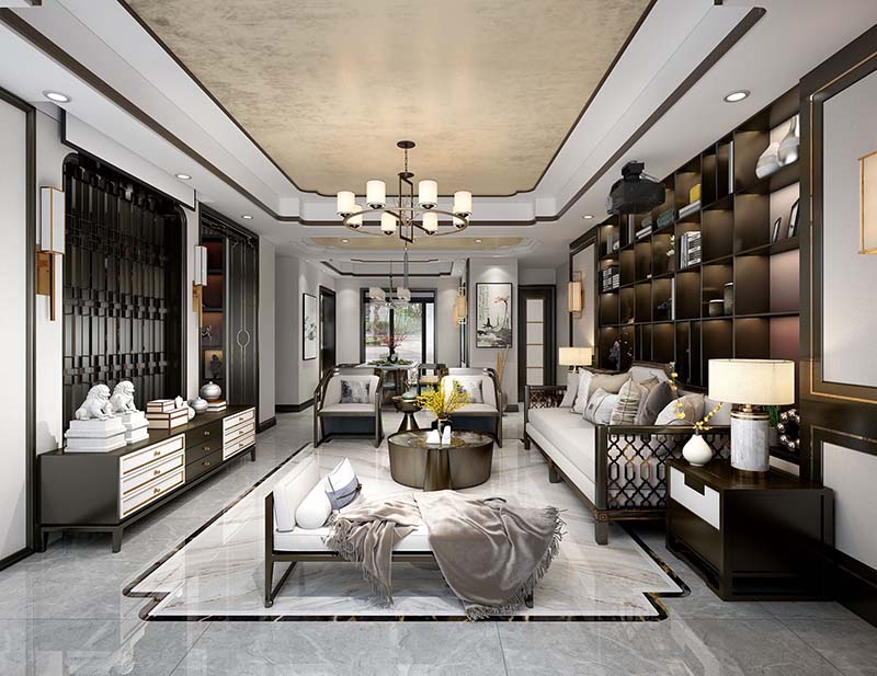保利观堂190平方三室三厅新中式风格装修效果图